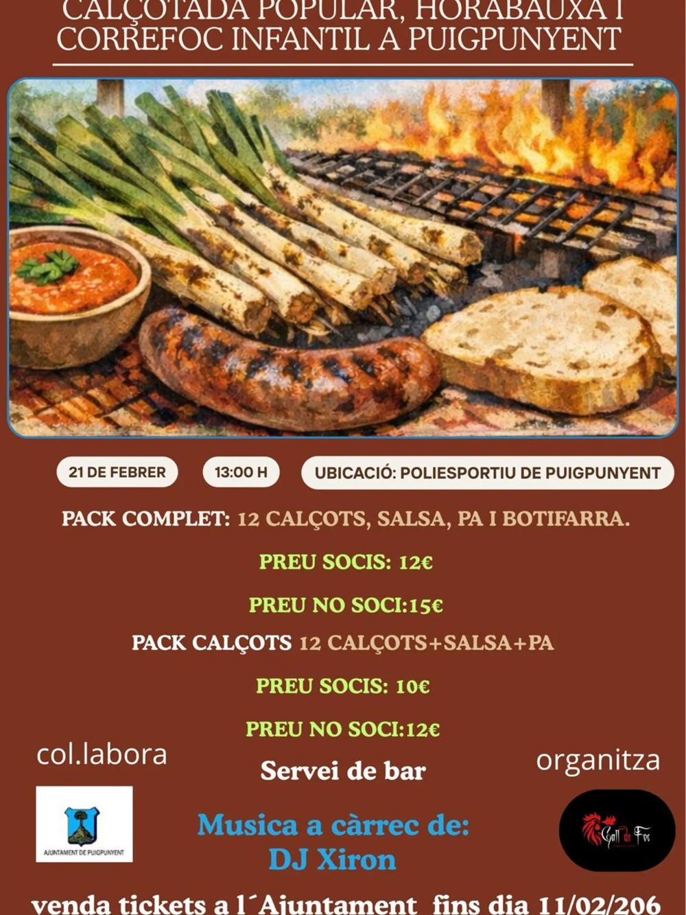 Opcions: lot complet o lot de calçots. També hi haurà servei de bar.