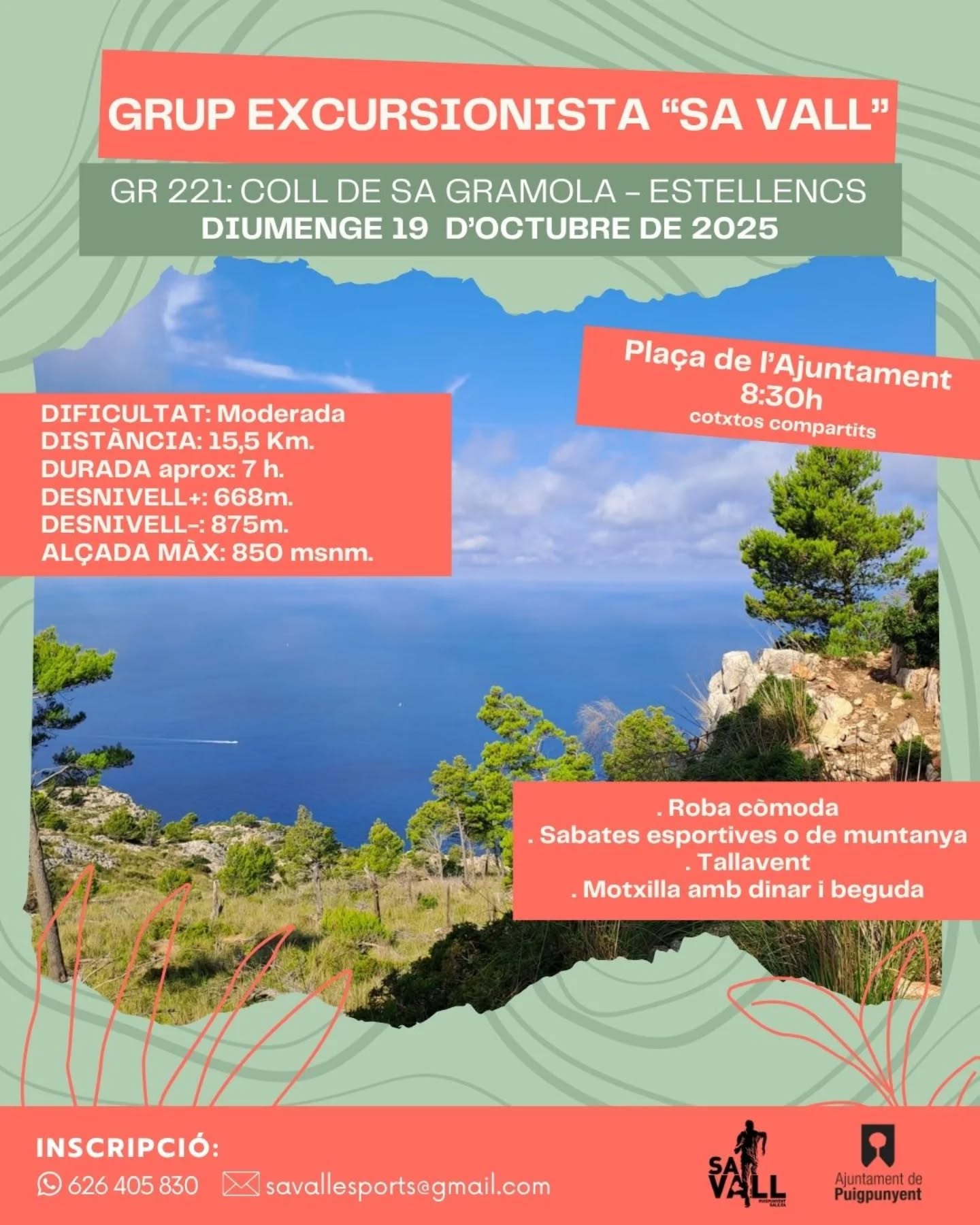 Recomanació: Dur roba còmoda, sabates esportives o de muntanya i motxilla amb aigua i dinar