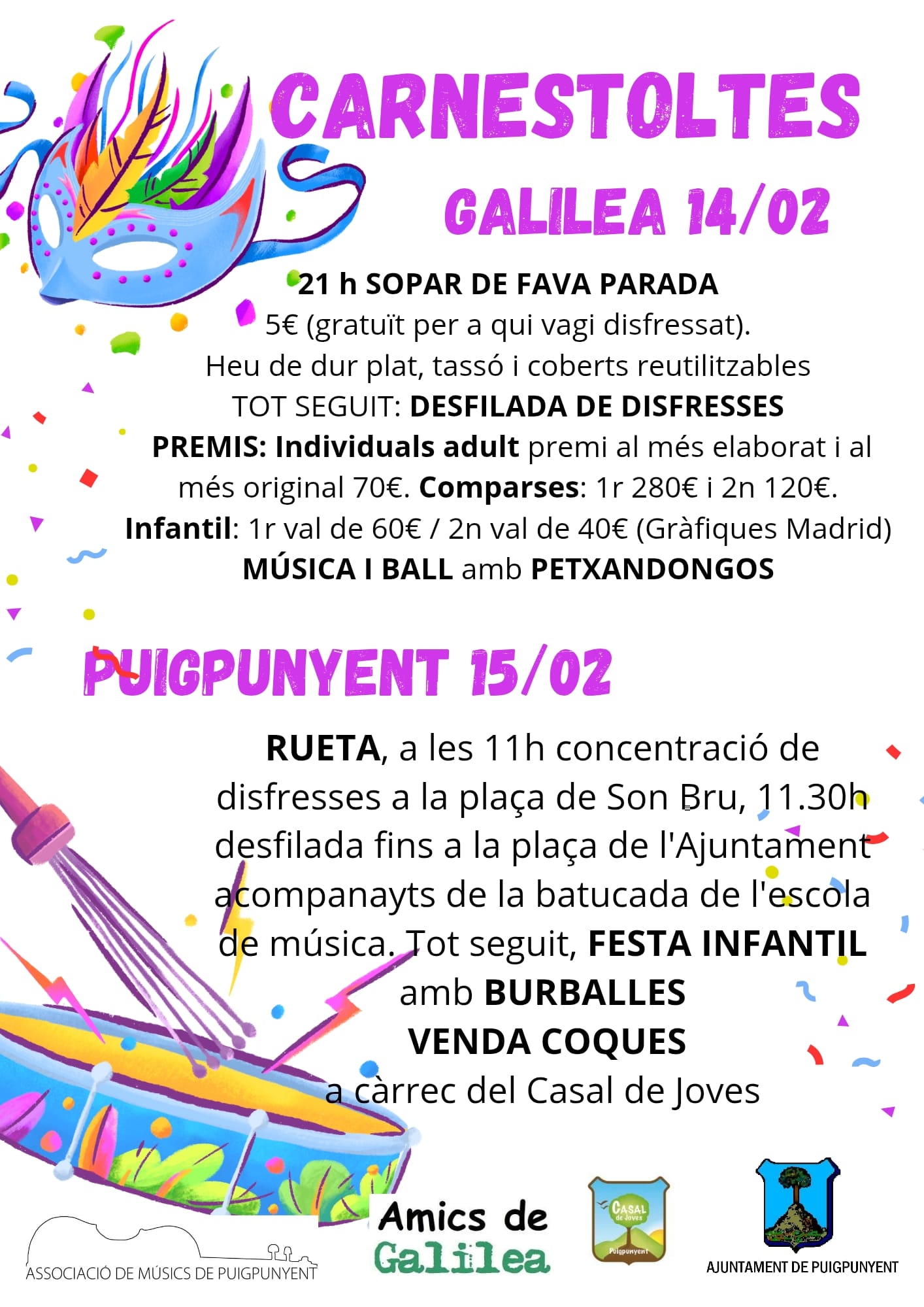 A les 21:00 sopar de fava parada a càrrec d'Amics de Galilea a 5€ (gratuït per a qui vagi disfressat) Recordeu dur plat, tassó i coberts reutilitzables.