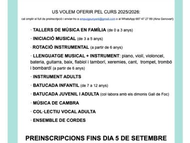 Recordau que la preinscripció és fins al dia 5 de setembre.